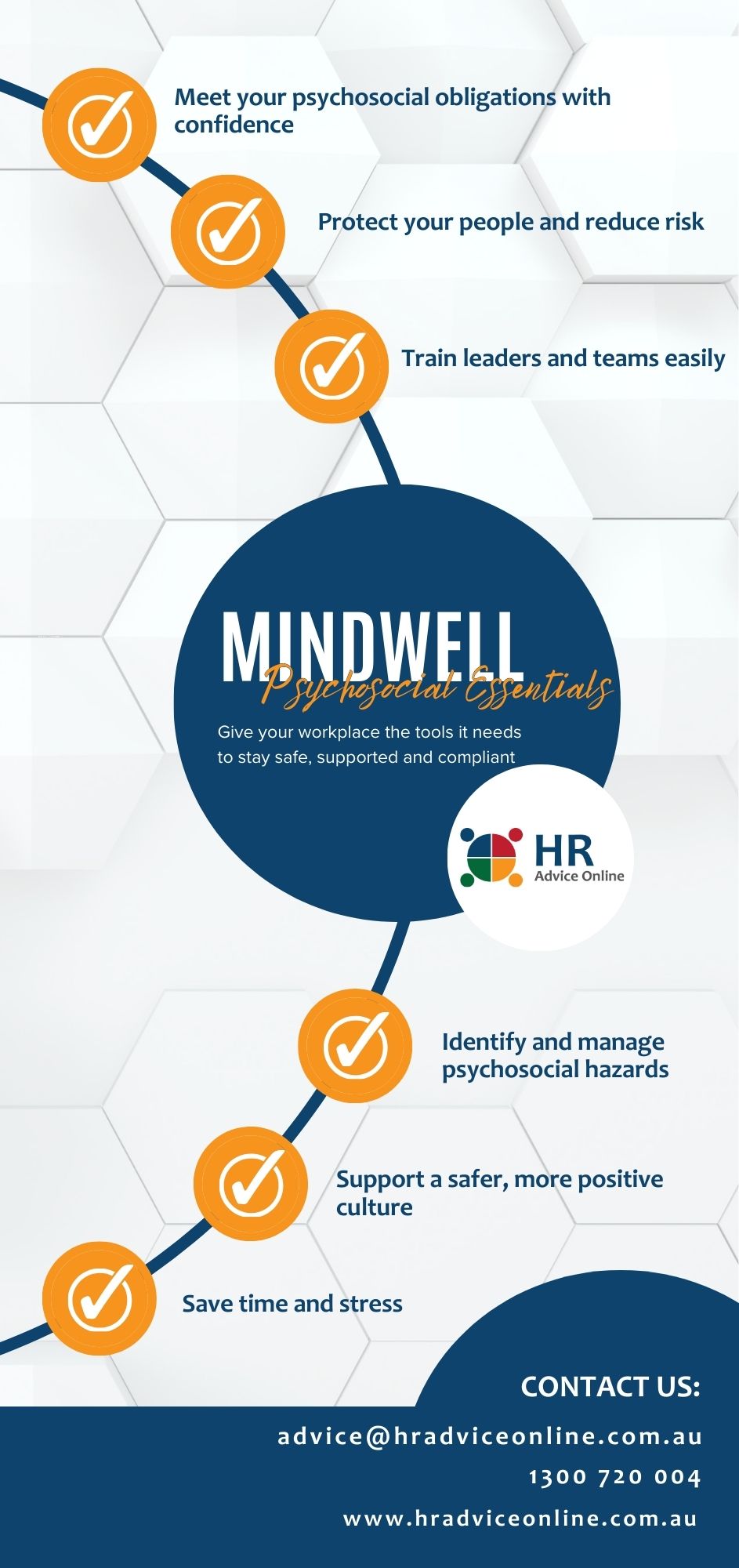 MindWell – Psychosocial Essentials is your pathway to a safer, more confident and compliant workplace. By getting started today, you’re giving your team access to practical tools, clear guidance and structured resources that make managing psychosocial safety simple and achievable. Complete the form below, and we’ll support you every step of the way.
